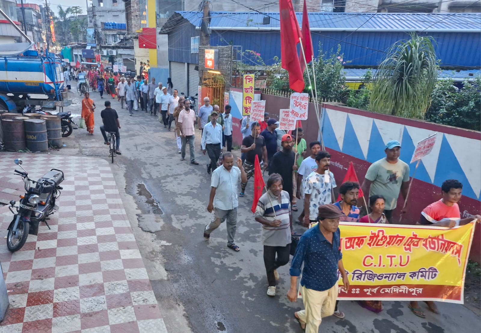 পূর্ব মেদিনীপুর জেলার ১২৮৫টি পুজো কমিটিকে এক লক্ষ দশ হাজার টাকার অনুদানের চেক থানাগুলোর মাধ্যমে পৌঁছে গেছে। আর মাত্র হাতে গোনা কদিনের মধ্যেই পূজো উৎসব শুরু হবে। অথচ খেটে খাওয়া শ্রমিক, পৌর কর্মচারী তাদের বেতন বোনাস এখনো জোটেনি। এদিন কাঁথি পৌরসভার বিভিন্ন বিভাগের কর্মচারী এবং কাঁথি শহরের দোকান কর্মচারীদের বোনাস এবং বেতনের দাবিতে একটি বিশাল মিছিল কাঁথি শহর পরিক্রমা করে। সিআইটিইউ কাঁথি রিজিওনাল কমিটির উদ্যোগে, রিজিওনাল অফিস থেকে দোকান কর্মচারীর, শ্রমিকদের পূজাবোনাস এবং পূজার পূর্বে বেতনের দাবিতে মিছিল শুরু হয়।