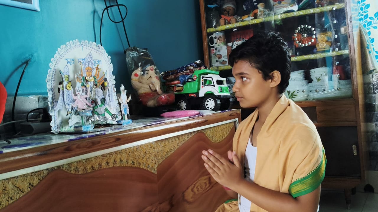 বয়স মাত্র ১২ বছর পার করেছে সবে, এরই মধ্যেই তার কীর্তিতে হতবাক এলাকার মানুষ থেকে পরিবারের লোকজন। বর্তমান যুগে এখন বেশিরভাগ ছোট-ছোট বাচ্চাদের হাতে স্মার্ট ফোন দেখতে পাওয়া যায়। যারা ফোনে গেম খেলতে ব্যস্ত। আর তাই খেলার মাঠগুলি ফাঁকা পড়ে থাকে ইদানিং। এই সন্ধিক্ষণে দাঁড়িয়ে মাত্র ১২-১৩ বছর বয়সের বালক নিজেই তৈরি করেছে মন্ডপ, মূর্তি আবার নিজেই পুরোহিত। মন্ত্র উচ্চারণ করে করছে পুজো। যা দেখে হতবাক এলাকার মানুষজন।