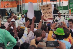 মমতার ধরনা মঞ্চে বিক্ষোভ পার্শ্বশিক্ষকদের