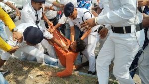 পরিবর্তন যাত্রা আটকাতেই রণক্ষেত্র, পুলিশের সঙ্গে ধস্তাধস্তিতে যুব মোর্চা