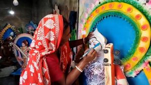 শেষ মুহূর্তের তুলির টান নাওয়া-খাওয়া ভুলে ব্যস্ত মৃৎশিল্পীরা